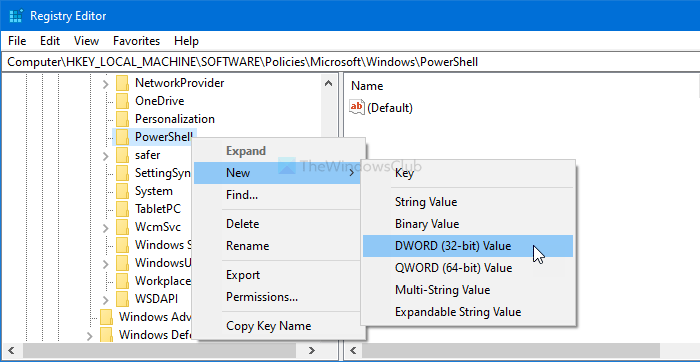 - Haga clic derecho en PowerShell> Nuevo valor DWORD (32 bits).