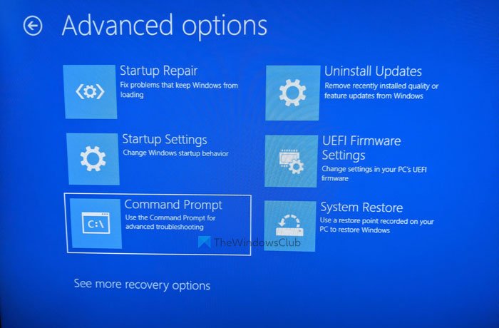 Si un controlador de dispositivo está causando problemas en su computadora, puededesinstale ese controlador usando el símbolo del sistemaen Windows 11 a través delEntorno de recuperación. No es necesario abrir el Administrador de dispositivos para eliminar o eliminar un controlador en Windows 11/10.