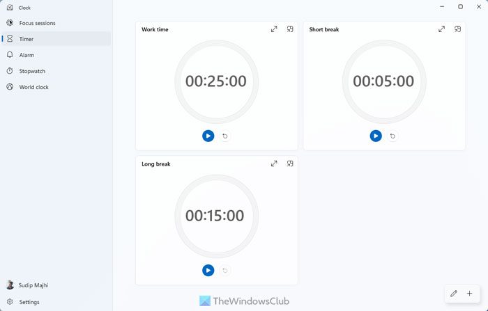 Aunque Microsoft no tiene una aplicación de temporizador Pomodoro independiente, puede usar la aplicación Reloj en Windows 11 y Windows 10 para configurar las cosas según sus requisitos. Como está integrado con Microsoft To Do, puede configurar sus tareas en Microsoft To Do y configurar los temporizadores en la aplicación Reloj. Por otro lado, puedes aprovechar Focus Sessions, que es un salvavidas para quienes quieren utilizar Pomodoro sin instalar aplicaciones de terceros. Aunque debes hacer todo manualmente, esta aplicación funciona bastante bien.