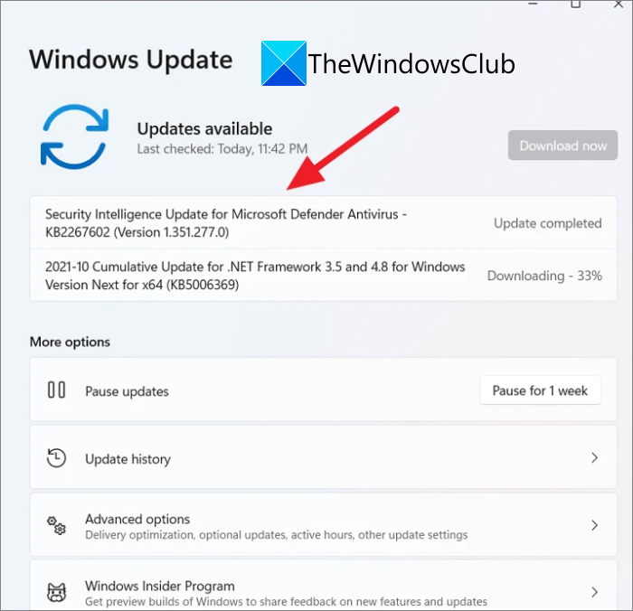 Entonces,usando la tecla de acceso rápido Windows + I y luego vaya a la pestaña Actualización de Windows. Después de eso, busque actualizaciones disponibles y luego descárguelas e instálelas.