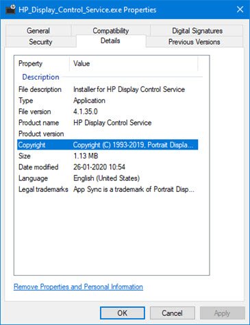 Al investigar un poco, descubrí que HP Display Control es un programa de software desarrollado por Portrait Displays para HP. Agrega un servicio de Windows (HPDCService) que se ejecuta continuamente en segundo plano. Su archivo ejecutable principal, DisplayControl.exe, se carga en cada inicio mediante una clave de Registro.