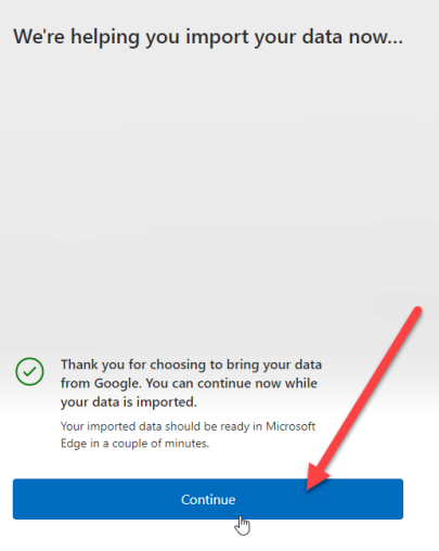 Microsoft Edge comenzará a importar datos desde Chrome. Haga clic en 'Continuar'.