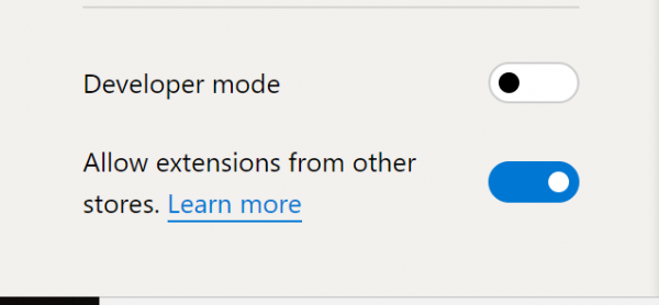 En la esquina inferior izquierda, cambie la opción paraPermitir extensiones de otras tiendas. Más informaciónaEn.