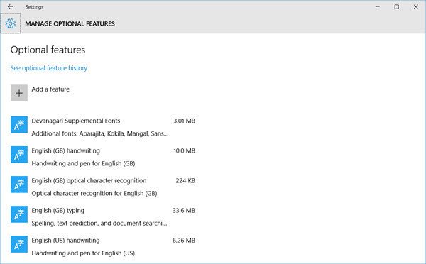 Al hacer clic enOpcionesle ofrece opciones adicionales. Puede agregar otras funciones como teclados, fuentes, escritura a mano y lápiz, OCR, mecanografía, lápiz mecanografiado, etc. Al hacer clic enEliminareliminará ese idioma.