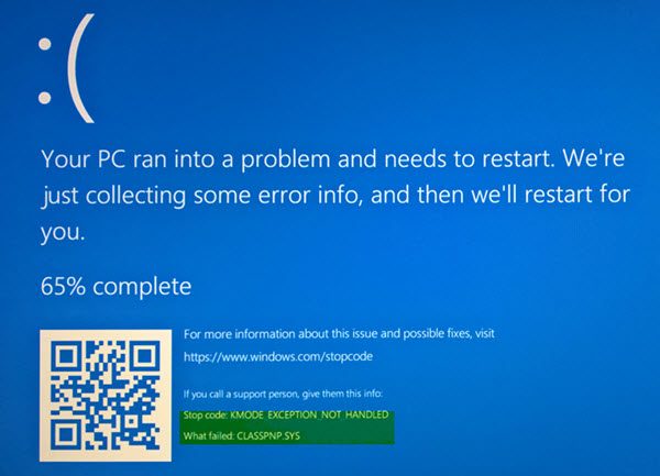 Excepción de KMode no manejada, CLASSPNP.SYS falló