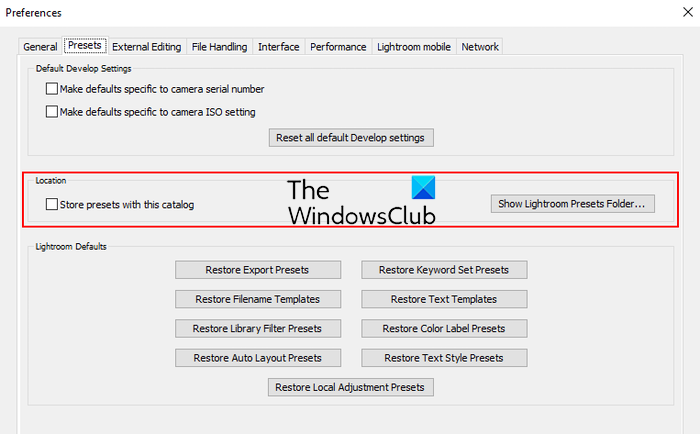 Si las soluciones anteriores no funcionaron, el problema podría facilitarse debido a ajustes preestablecidos y fuentes dañados o rotos en Lightroom. Entonces, en ese caso, puede eliminar o mover manualmente los archivos preestablecidos para mejorar el rendimiento de Lightroom. Estos son los pasos para hacerlo: