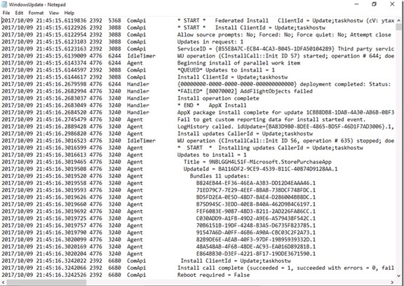 | BlueBox.log | Nivel inferior: Windows\Registros\Mosetup | Información sobre lo que se comunicará entre setup.exe y Windows Update. | Úselo durante fallas de nivel inferior de WSUS y WU o para. |