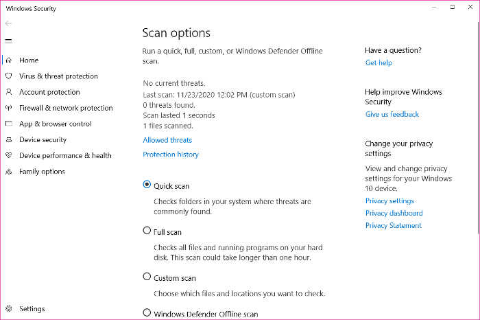 Cada máquina con Windows 11/10 viene conpreinstalado. Windows Defender es un software antivirus y antimalware capaz que ofrece protección del sistema en tiempo real y funciones de seguridad de datos bajo demanda.