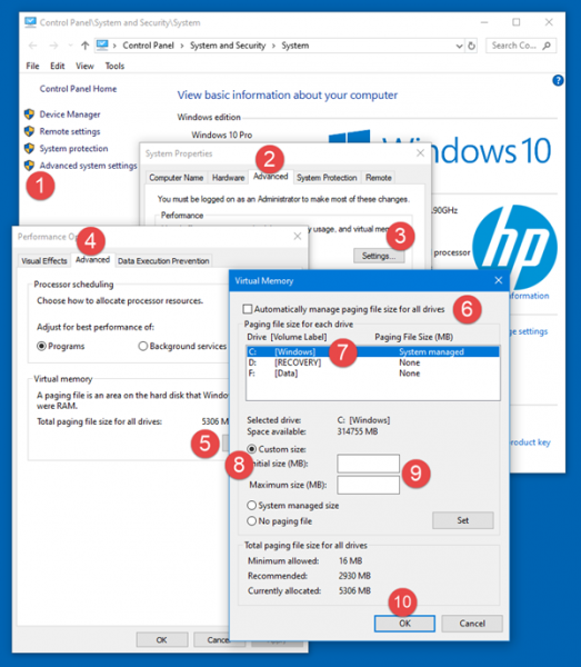 La función de memoria virtual libera espacio en la RAM transfiriendo temporalmente algunos datos al espacio del disco duro cuando la RAM está llena. No podemos cambiar fácilmente el tamaño de la memoria física sino de la memoria virtual. Entonces, si el sistema se queda sin memoria virtual, puedepara solucionar este error.
