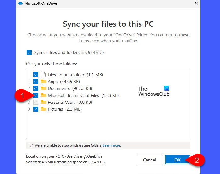 Una vez completado el proceso de restablecimiento, vuelva a iniciar sesión en su cuenta OneDrive y vuelva a seleccionar las carpetas que desea sincronizar con su PC.