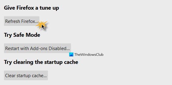 Si el navegador web Mozilla Firefox de su PC con Windows no funciona correctamente, puede utilizar elActualizar Firefoxfunción para restablecer y restaurar la configuración de su navegador al valor predeterminado en Windows 11/10. Las versiones anteriores tenían laRestablecer Firefox, que esencialmente hizo lo mismo, pero en versiones recientes, tiene la función Actualizar Firefox.