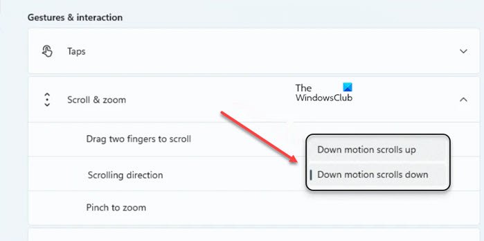 Cada uno tiene una opción diferente cuando se trata de direcciones de desplazamiento. Es posible que le guste que la página se desplace en la misma dirección a medida que mueve los dedos sobre el panel táctil. O puede que te guste de forma invertida. Invertir la dirección de desplazamiento del panel táctil de su computadora portátil es bastante fácil ya que Windows ofrece esta personalización de forma predeterminada. Si estas buscandoinvertir la dirección de desplazamientode tu mouse, entonces tendrás que seguir el procedimiento mencionado en esta publicación.