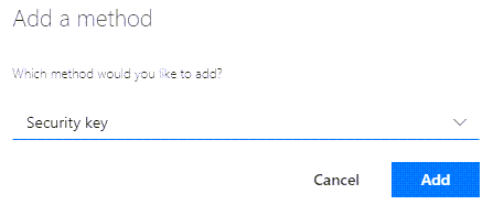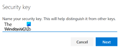 Verifique si desea el tipo de clave de seguridad USB o NFC y seleccione Siguiente.