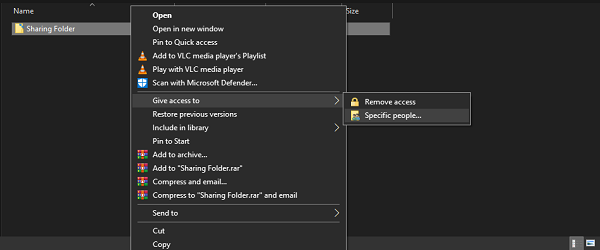 Haga clic derecho en la carpeta y haga clic en Dar acceso a.