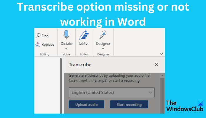 ElTranscribirLa opción es una función de Word que permite a los usuarios convertir voz en texto. Se puede grabar directamente en Word o cargar un audio ya grabado y convertirlo en texto. Algunos usuarios han informado que falta la opción Transcribir o no funciona en Word. Transcribe solía estar disponible sólo en Word en línea, pero ahora también está disponible en Word para Windows. Este artículo le dirá qué hacer siFalta la opción de transcribir o no funciona en Word– En línea y Microsoft 365.