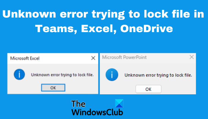 Algunos usuarios de Office han experimentado recientemente "Error desconocido al intentar bloquear el archivo" mientras usa aplicaciones de Office como Excel, Teams, OneDrive, PowerPoint, etc. Es aún más frustrante para los usuarios empresariales de SharePoint, que dependen del servicio para compartir y editar archivos. En esta publicación, intentaremos solucionar el problema.Error desconocido al intentar bloquear archivos en Teams, Excel, OneDrive y SharePoint. Este error desconocido impide que los usuarios accedan al archivo o incluso realicen cualquier tarea en él.