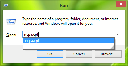 1.PrensaTecla Windows + R, tiponcpa.cplen elCorrercuadro de diálogo y presioneIngresarabrirConexiones de red.