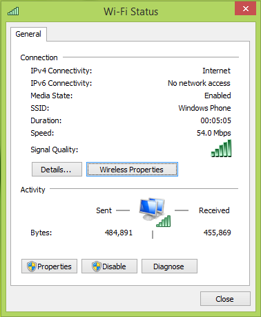 3.En elEstado WiFicomo se muestra a continuación, haga clic enPropiedades inalámbricas.