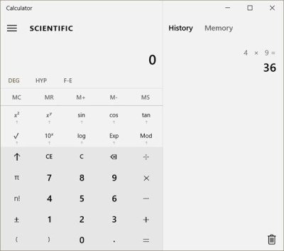 Este modo de calculadora científica con todas las funciones de la Calculadora de Windows 10 es muy útil para los estudiantes y pueden realizar cálculos matemáticos típicos aquí. Por ejemplo, funciones trigonométricas en grados y radianes, y otras funciones estándar como SIN, COS y TAN, que son útiles para el estudiante de secundaria.