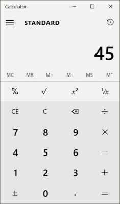 Aquí podrás realizar cálculos normales como sumas, restas, divisiones, multiplicaciones, raíces cuadradas, porcentajes y fracciones. También puede guardar los cálculos y verlos en la pestaña Historial que se encuentra en el panel derecho de la aplicación. Agregarlos a la memoria (M+) guardará y mostrará las cifras en la pestaña Memoria.