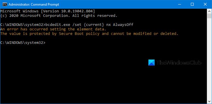 Si ve un mensaje de error –Se ha producido un error al configurar los datos del elemento. El valor está protegido por la política de arranque seguro y no se puede modificar ni eliminar.en Windows 11/10, entonces esta publicación puede ayudarte.