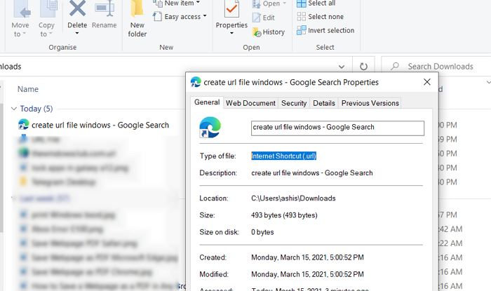 Si arrastra y suelta la dirección desde el navegador web al escritorio o en cualquier carpeta, se creará un archivo .URL. También se le llama acceso directo a Internet (.url) para iniciar rápidamente el archivo en el navegador predeterminado.