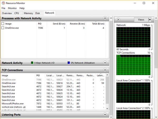 Presione la tecla Windows + R para abrir la ventana Ejecutar. Escriba RESMON.EXE en el cuadro de diálogo Ejecutar. Esto abre el Monitor de recursos en Windows 10. Haga clic en la pestaña Red para ver qué componentes se conectan a Internet. Le mostrará procesos con actividad de red y, en lugar de simplemente enumerar la dirección IP o el número de puerto, le mostrará los nombres de los procesos que muestran a qué sitios web y servicios en línea se está conectando su computadora.