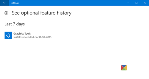 Al hacer clic en elVer el historial de funciones opcionalesSe abrirá el siguiente panel, donde podrá ver un historial de todas las funciones opcionales que agregó o eliminó.