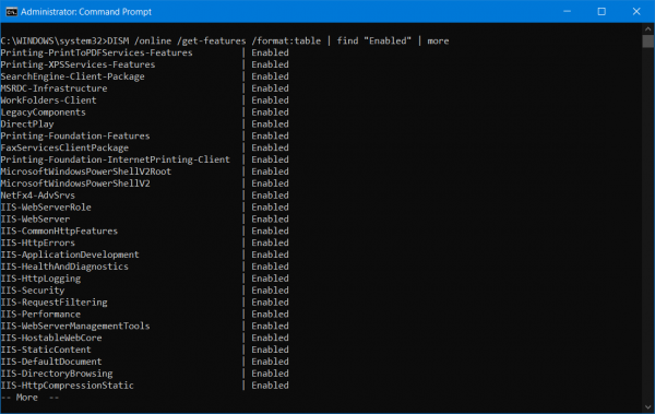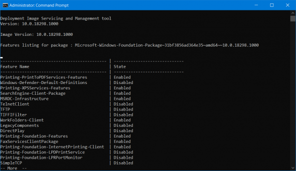 DISM /online /get-featureinfo/featurename:[Enter the name of the feature here]