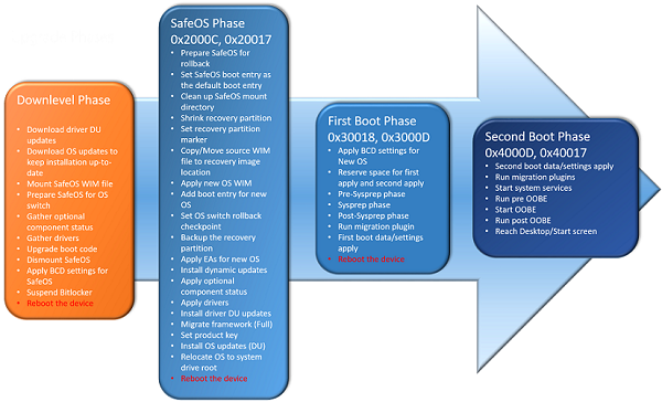 Fase de sistema operativo seguro: esta fase se inicia para instalar todas las actualizaciones requeridas. Si es necesario, se prepara una reversión del sistema operativo.