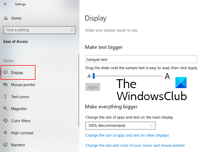 - Aquí, bajoMostrar, puedes cambiar el tamaño de las aplicaciones, el texto y otros elementos.