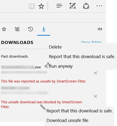 Si al usarlo, informa que elel archivo no es seguro para descargar, y su descarga está bloqueada, verá estos elementos del menú contextual cuando haga clic derecho en ese archivo: