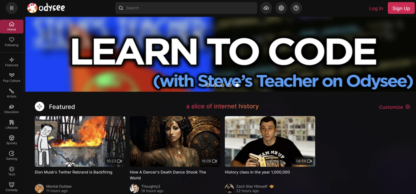 İçerik oluşturuculara öncelik vermek için geleneksel reklam geliri yapısından uzaklaşan Youtube'a bir alternatif olan Odysee'ye girin. Bu platform sayesinde içerik oluşturucular çalışmaları ve çalışmalarından nasıl para kazanılacağı konusunda daha fazla özgürlüğe ve kontrole sahip oluyor.