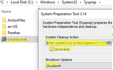 Son adım, özel Windows görüntünüzü sysprep.exe aracıyla dağıtıma hazırlamaktır. Sysprep penceresini genişletin ve aşağıdaki seçenekleri seçin: