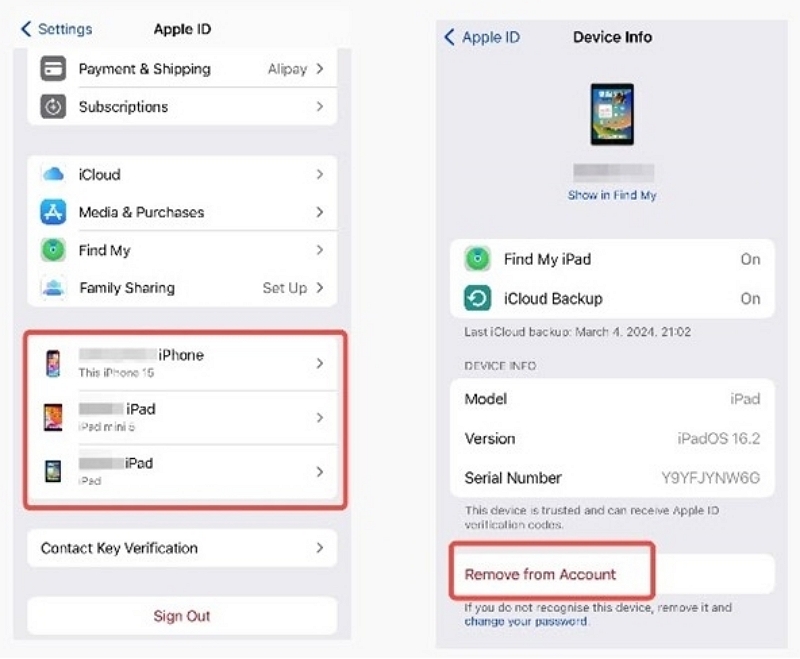 Durum:Aynı Apple Kimliği hesabına bağlı birden fazla cihazınız varsa iPhone'un bağlantısını kaldırmak için başka bir iOS cihazı kullanabilirsiniz.