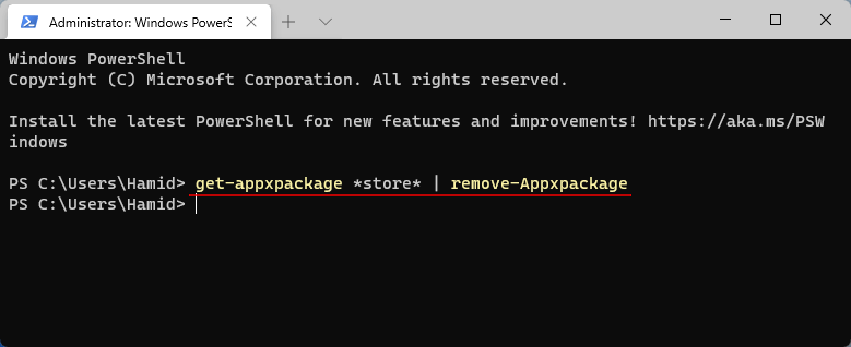 kaldır-Appxpackageve vurGirmekMicrosoft'u kaldırmak için