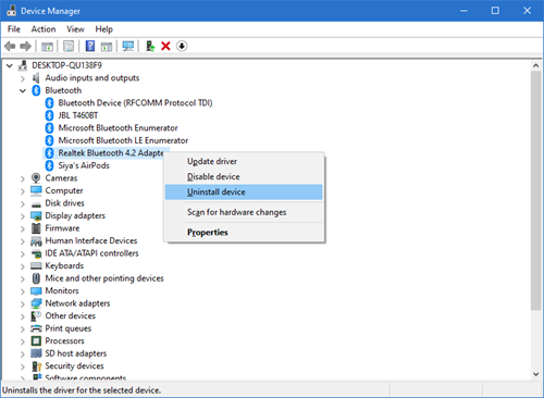 - Bluetooth Adaptörünü yeniden yükleyin.
