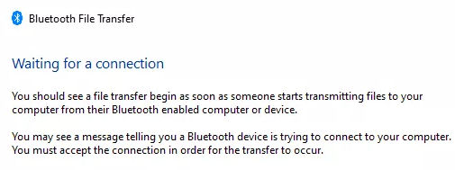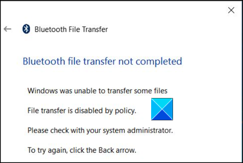 Bir görebilirsinizBağlantı bekleniyormesaj veyaBluetooth dosya aktarımı tamamlanmadı, Windows bazı dosyaları aktaramadı, Dosya aktarımı politika tarafından devre dışı bırakıldımesaj.