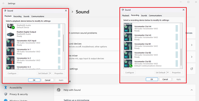 Bazı PC'ler ve Dizüstü Bilgisayarlar birden fazla ses çıkış bağlantı noktası sunar. Bunları doğrudan Windows'tan yapılandıramasanız da, her sesin nereye gitmesini istediğinizi seçmek için Voicemeeter'ı kullanabilirsiniz. Sesi farklı hoparlörlere, kulaklıklara veya kayıt yazılımlarına yönlendirmek gibidir.