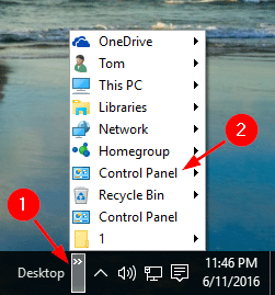 Панель інструментів робочого столу тепер додано до панелі завдань. Натисніть на нього, а потім виберітьПанель керуваннязі списку.
