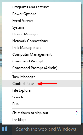 Натисніть клавішу Windows + X (або клацніть правою кнопкою миші настарткнопка), щоб відкрити меню WinX у нижньому правому куті екрана. Звідти ви можете вибратиПанель керування.