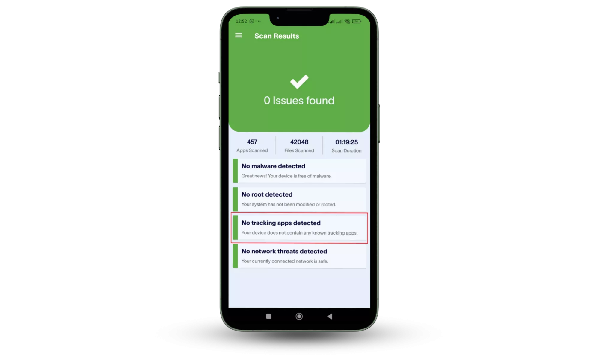 Однак хоча процес початкового сканування ефективний, він може бути повільним і призупинятися, якщо програма працює у фоновому режимі або екран вимкнено. Крім того, у версії Android відсутні деякі складніші функції, наприклад детектор кейлоггера.