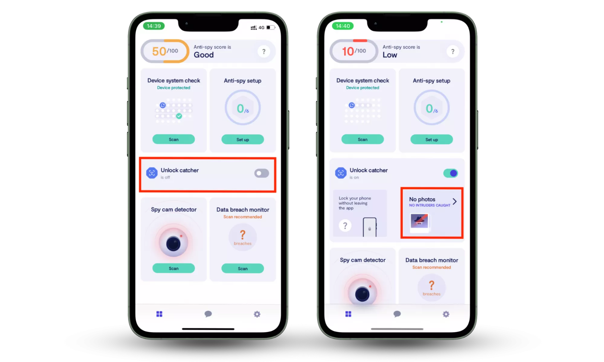 Крок 2-4: увімкніть Unlock Catcher > Надайте необхідні дозволи > Перевірте звіт про спроби неавторизованого доступу.Налаштування антишпигуна