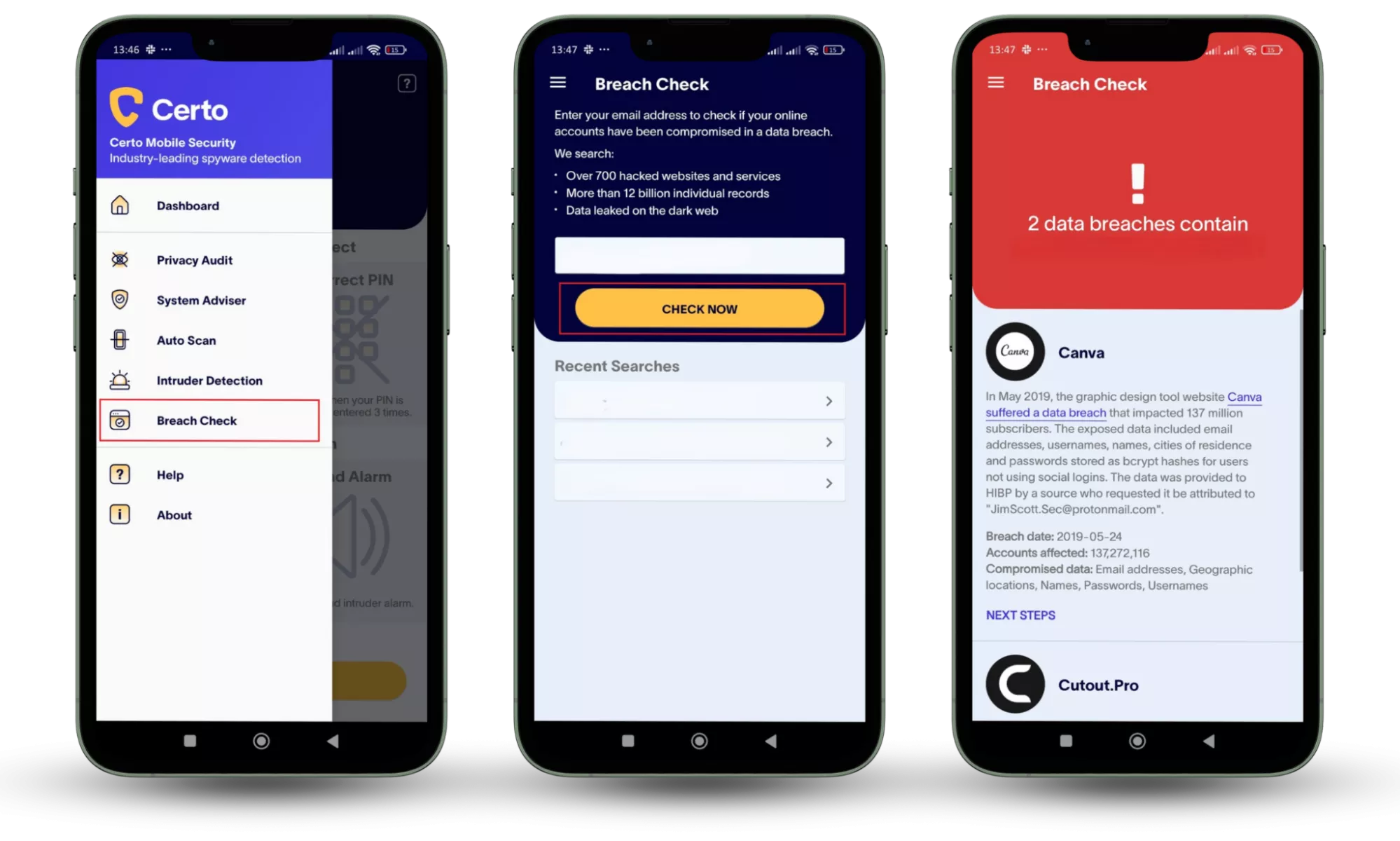 Крок 1-3: відкрийте Certo AntiSpy > виберіть «Перевірка на порушення» > введіть свою електронну адресу.2. Скільки коштує Certo AntiSpy