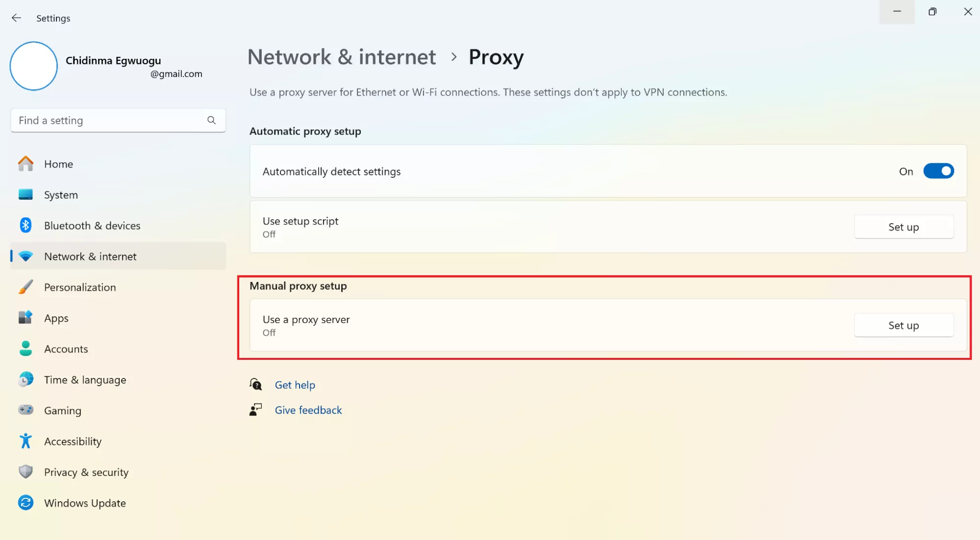 - Прокрутіть вниз доНалаштування проксі вручну.