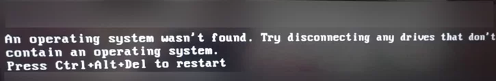 An operating system wasn't found. Try disconnecting any drives that don't contain an operating system. Press Ctrl+Alt+Del to restart.