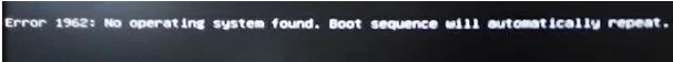 Error 1962: No operating system found. Boot sequence will automatically repeat.