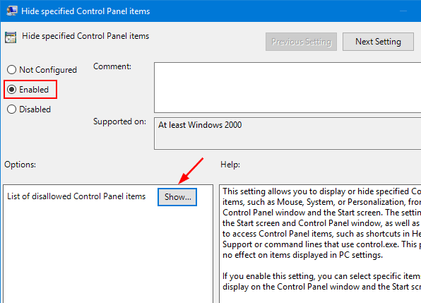 - Закрийте редактор локальної групової політики та перезавантажте комп’ютер. Зазначений вами елемент/аплет більше не відображатиметься на панелі керування.
