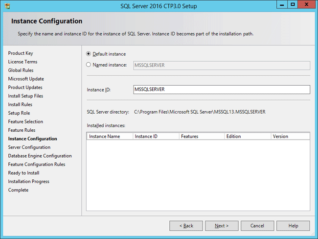 SQL Server 2016 Community Technology Preview 3.0 (CTP 3.0) було випущено для громадськості 28 жовтня, і я завантажив нову копію, щоб почати її випробувати. У цій статті я збираюся покроково пояснювати, як інсталювати екземпляр SQL Server 2016 CTP 3.0 у системі Windows Server 2012 R2.