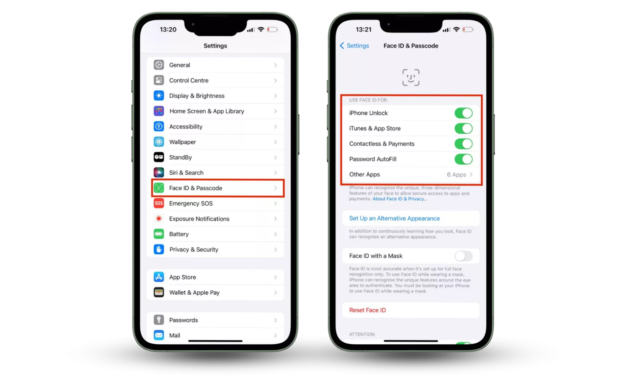 Біометрична автентифікація особливо цінна для програм, які часто використовуються. Face ID і Touch ID пропонують вам баланс між безпекою та зручністю – ви безперешкодно отримуєте доступ до програм (розблоковуєте програми за допомогою свого обличчя або відбитка пальця), одночасно блокуючи зловмисників. Крім того, якщо вам цікаво, як запобігти злому iPhone, увімкніть Face ID і Touch ID — чудове місце для початку.